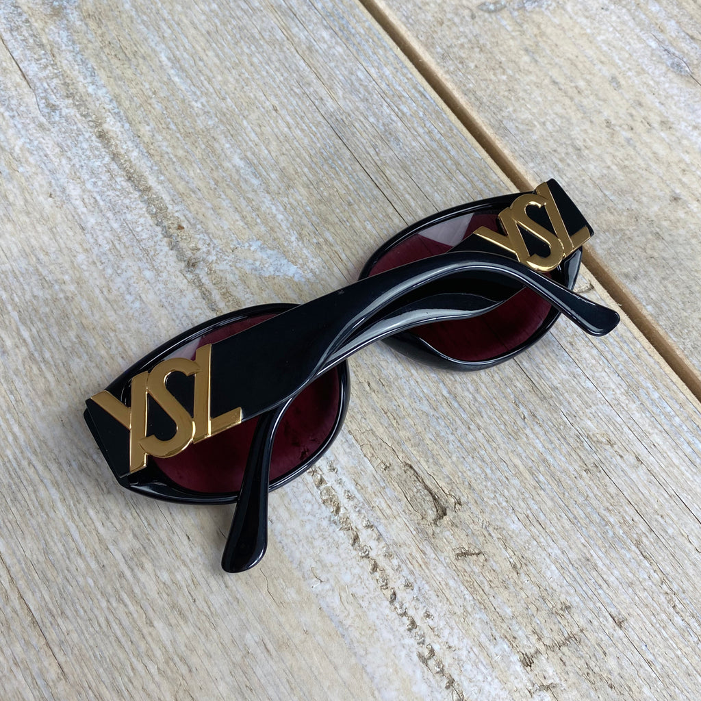 Yves Saint Laurent Vintage Black Gold Logo Sunglasses